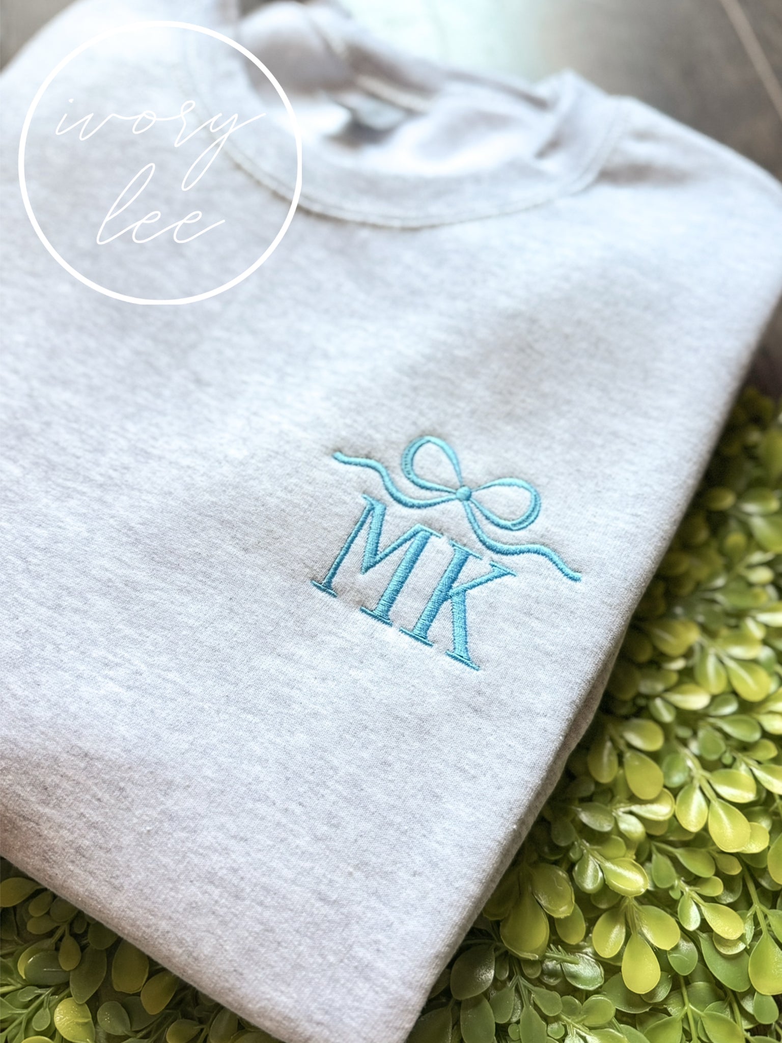 Unisex fit Gildan crewneck sweatshirts! Bow + Initials embroidered on the left chest. Please allow up to two weeks to ship!